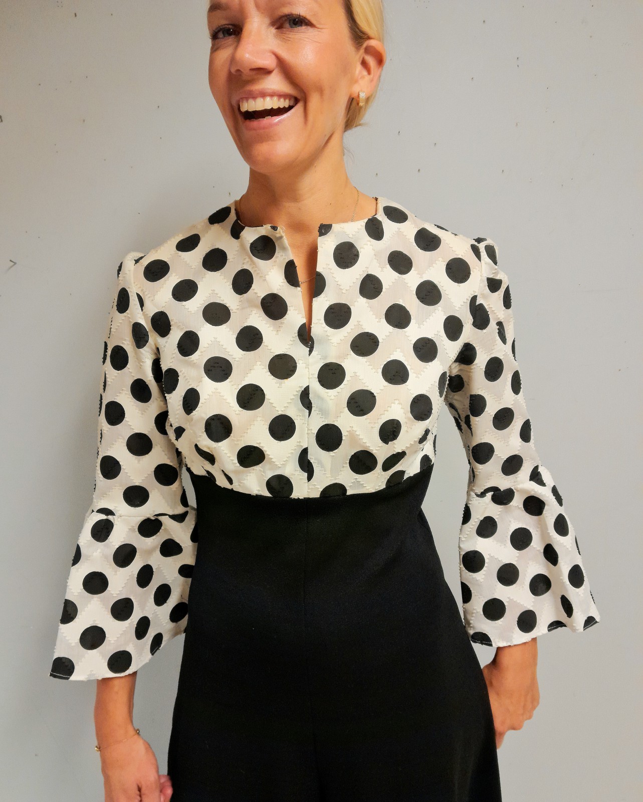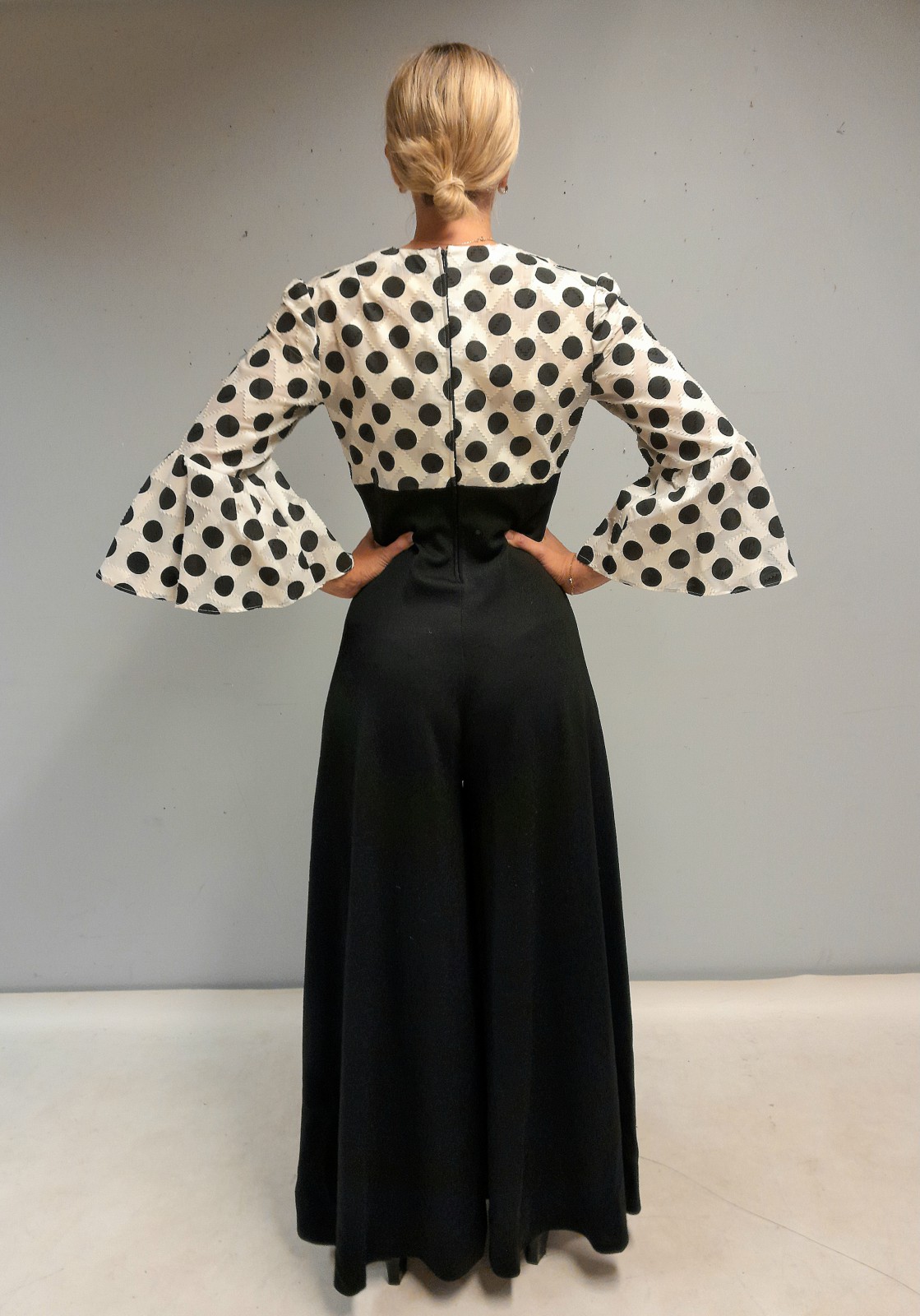 VINTAGE, BYXDRESS, 1960-TAL Vida byxor och överdel i mönstrat tyg, strl 38, ett blekt märke på ett byxben Avslutas 2025-10-20 18:04:00