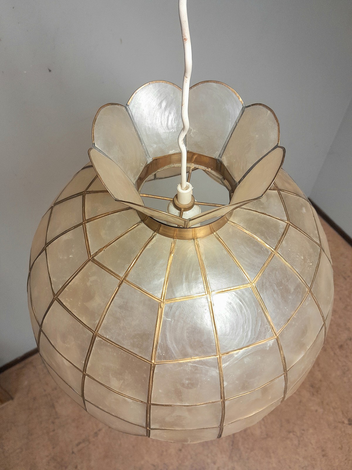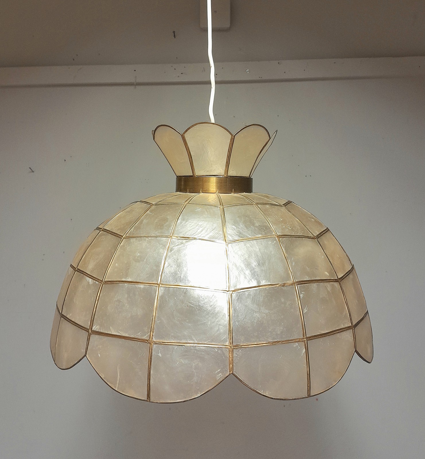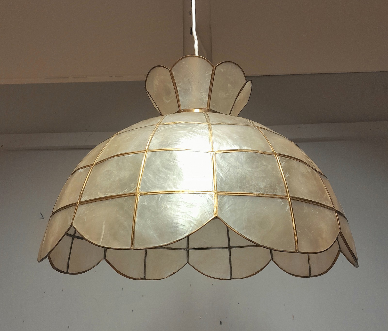 TAKLAMPA, SNÄCKSKALSLAMPA, SENT 1900-TAL Mässing och snäckskal, diam 40 cm, h 27 cm Avslutas 2025-10-20 18:05:00