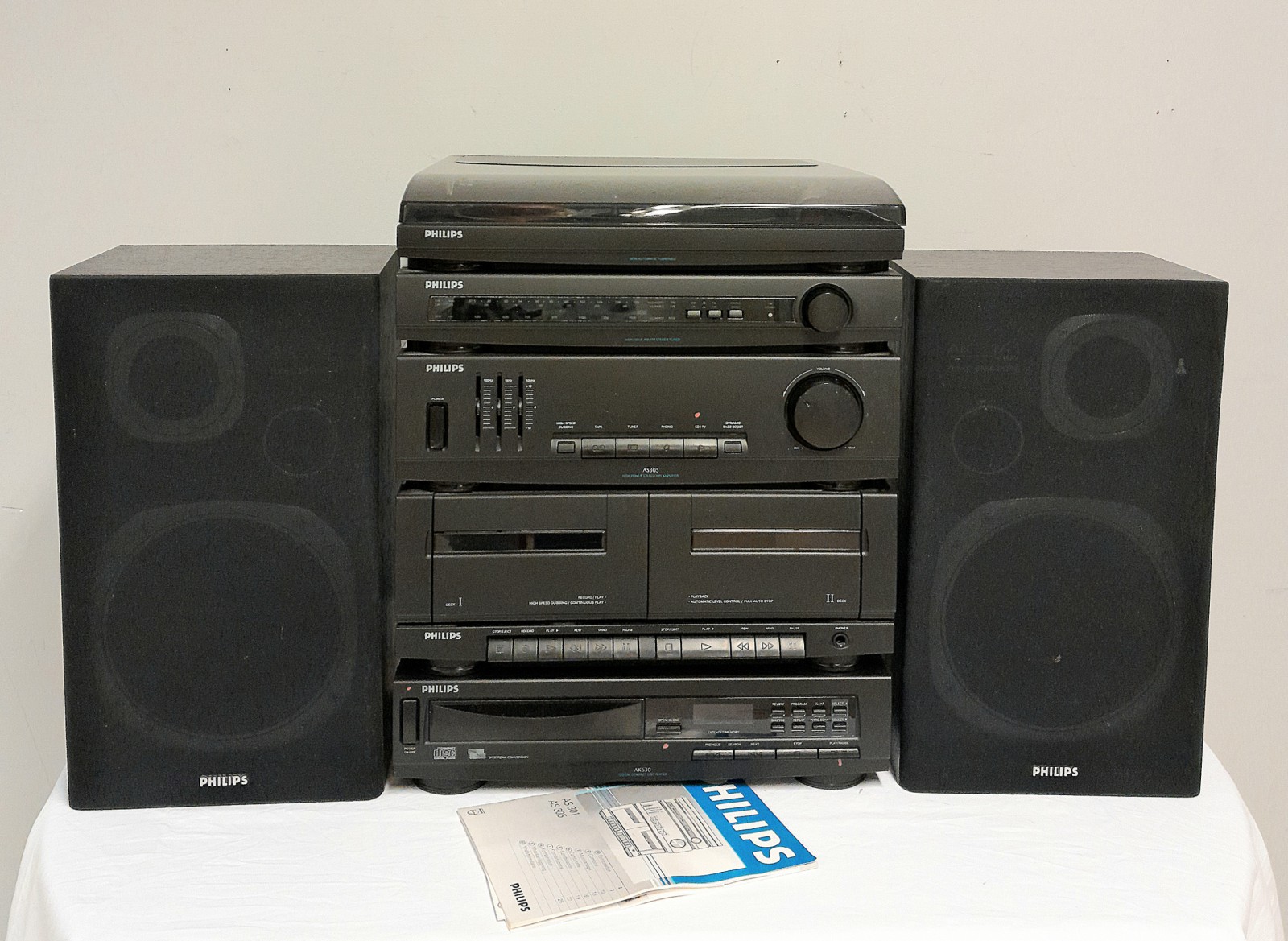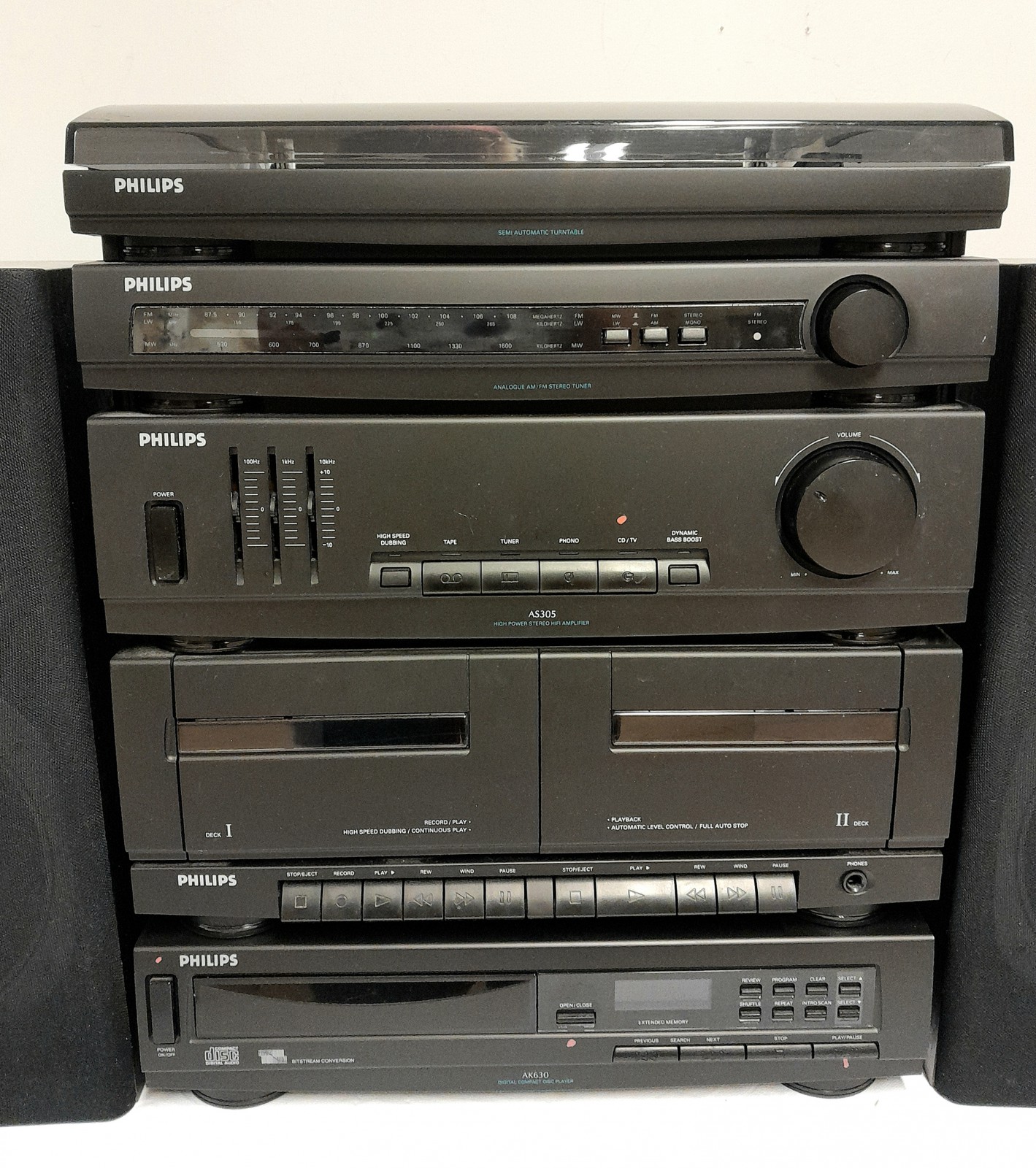 MUSIKANLÄGGNING, PHILIPS AS 305 Grammofon, radio, förstärkare, dubbelkasett, cd-spelare, 2 st högtalare, startar men ej vidare testad, ingen garanti Avslutas 2025-10-20 18:07:00