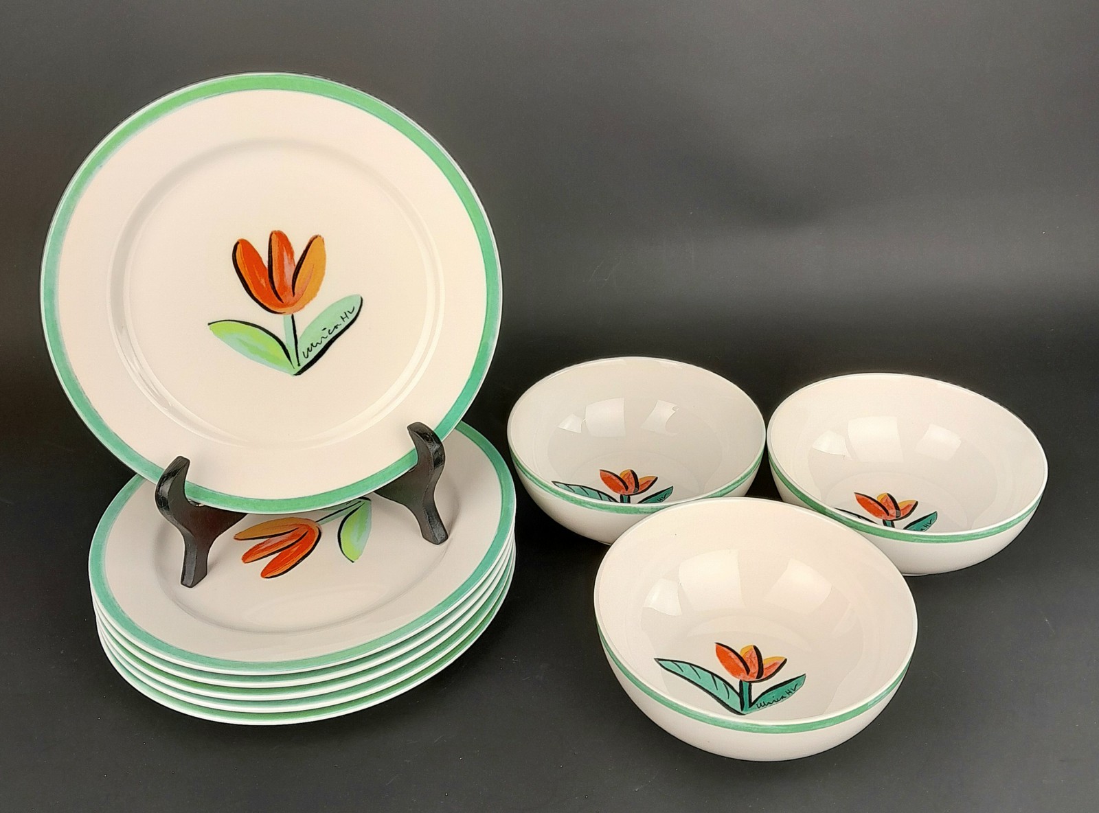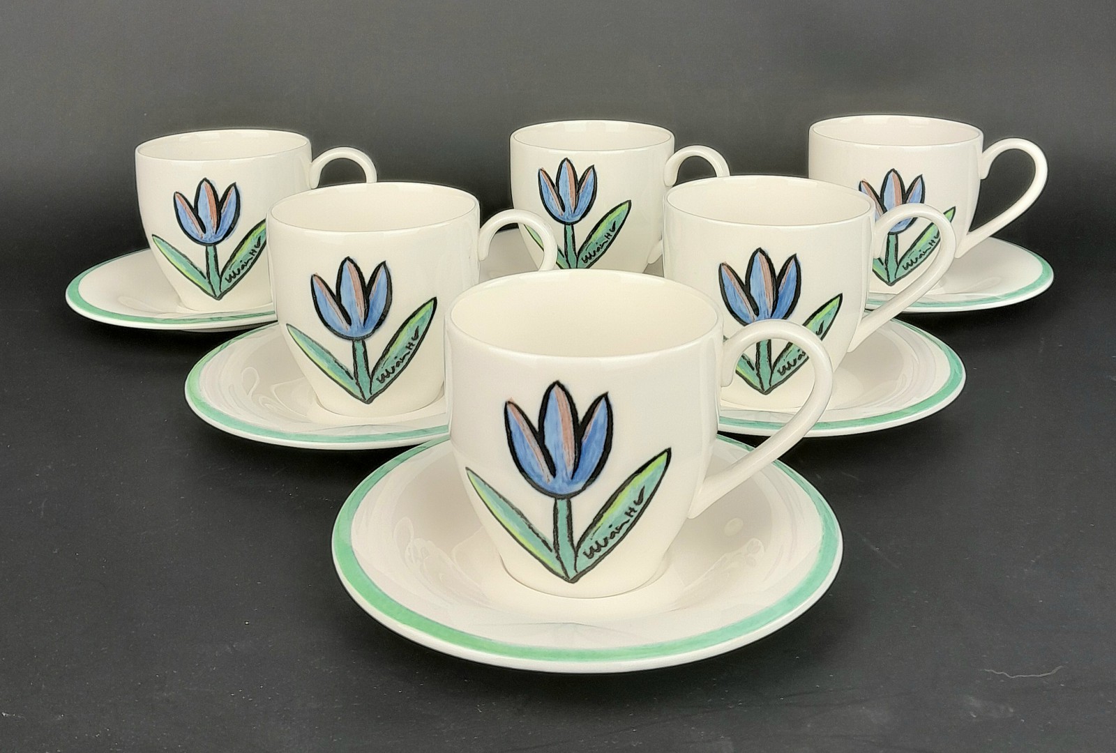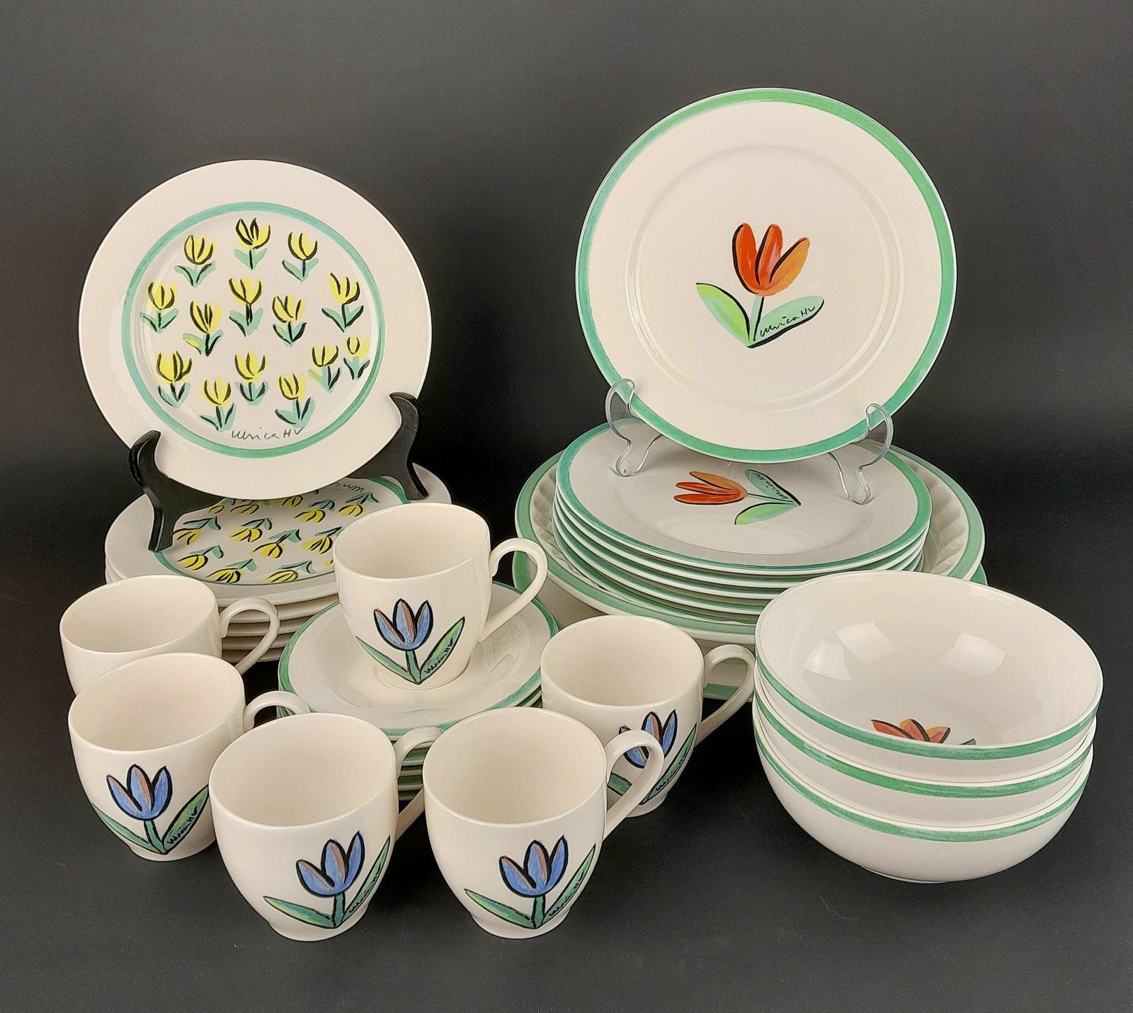 ULRICA HYDMAN VALLIEN, SERVISDELAR "TULIPA" 6 kaffekoppar/fat, 6 assietter dia 19,5 cm, 6 tallrikar dia 21,5 cm, 3 skålar, en tallrik och en form dia 27 cm Avslutas 2026-02-09 18:00:00