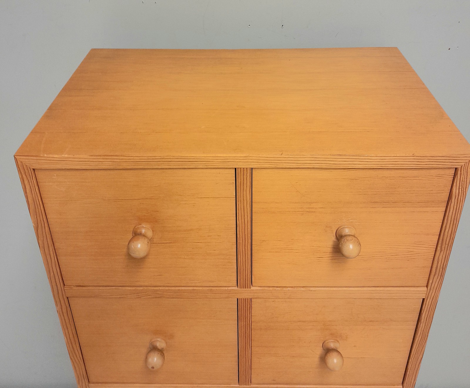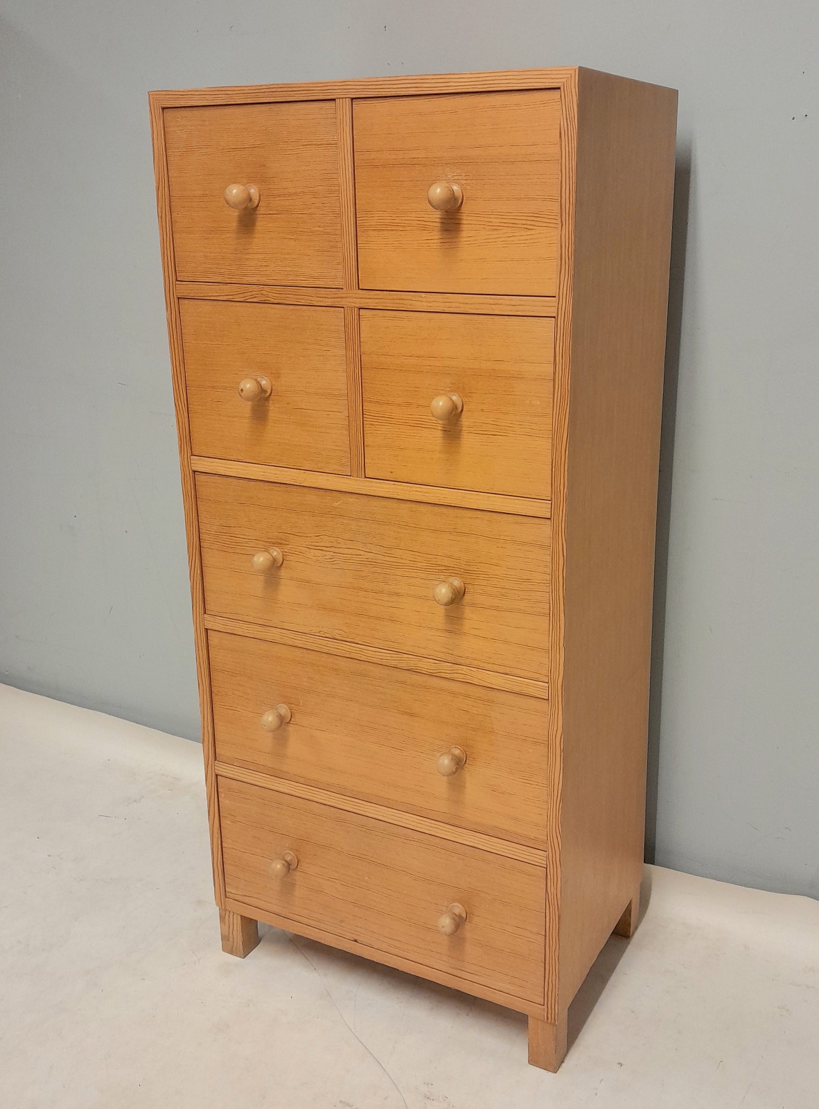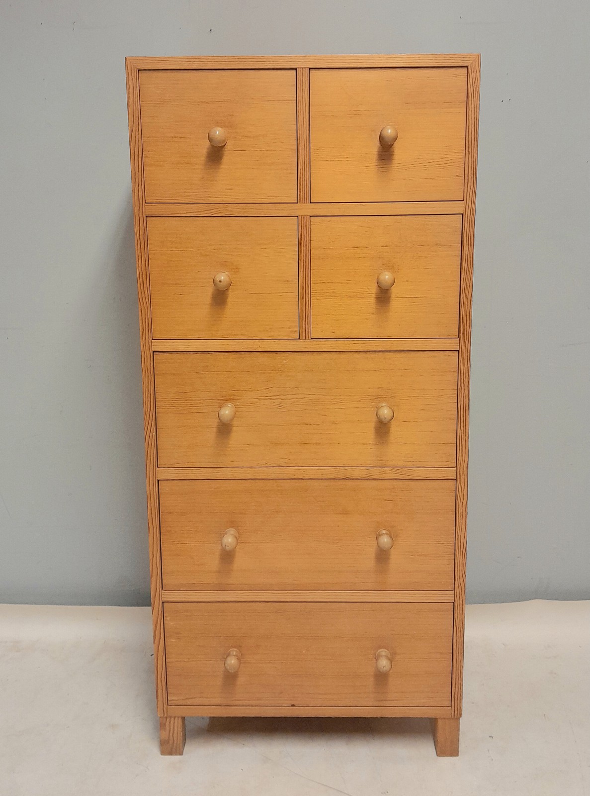 BYRÅ, FURU,1970-TAL 7 st lådor, märken på toppskivan, h 122 cm, b 55 cm, d 35 cm Avslutas 2026-02-09 18:04:00