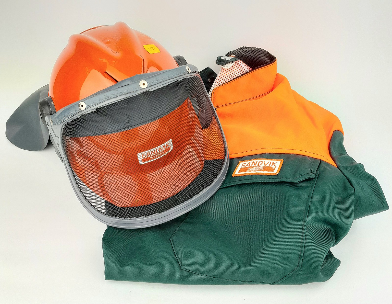 SKYDDSHJÄLM OCH ARBETSJACKA, SANDVIK Hjälm Sandvik Windsor, jack i polyster/bomull strl M, nyskick Avslutas 2026-02-09 18:06:00