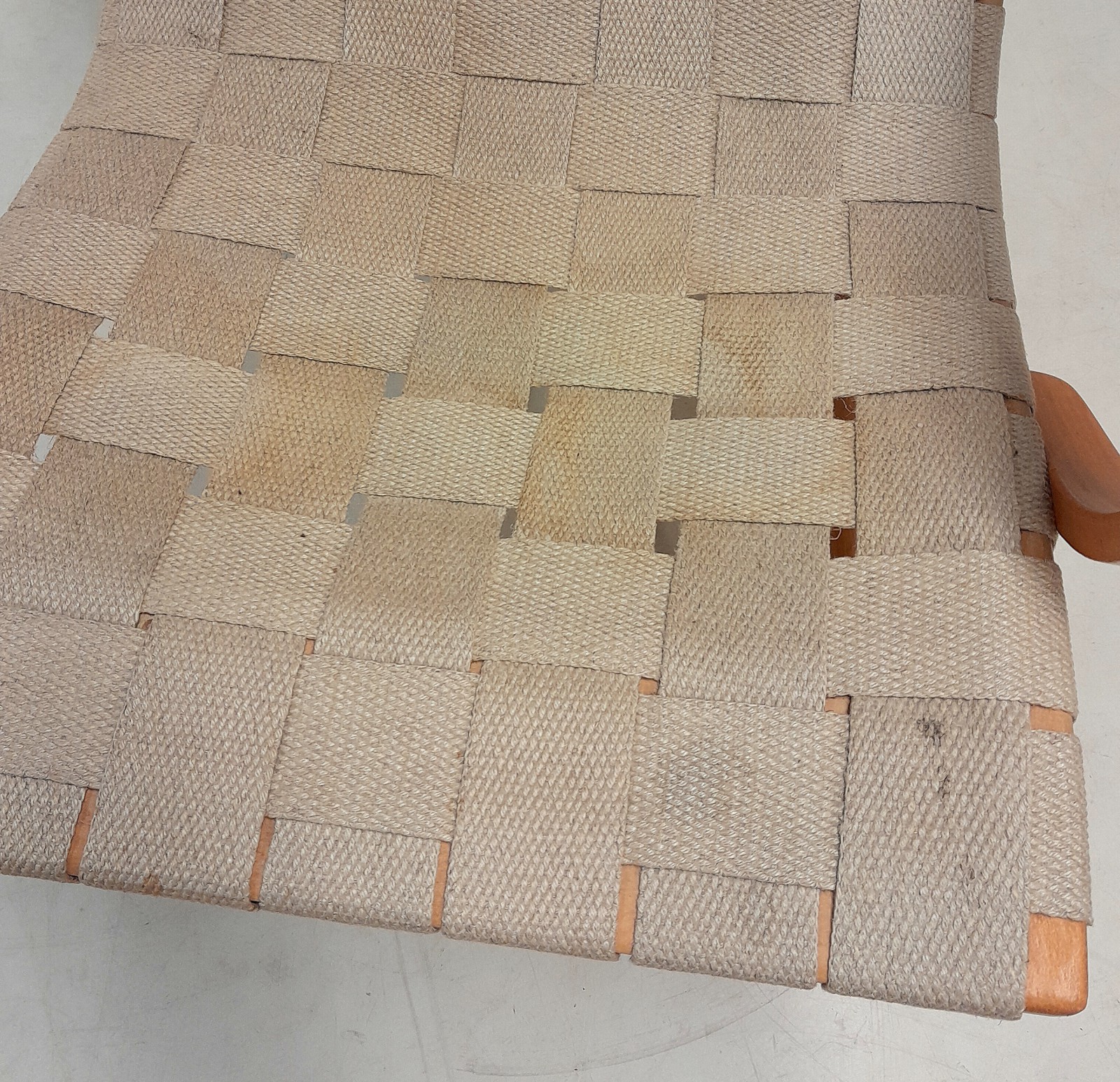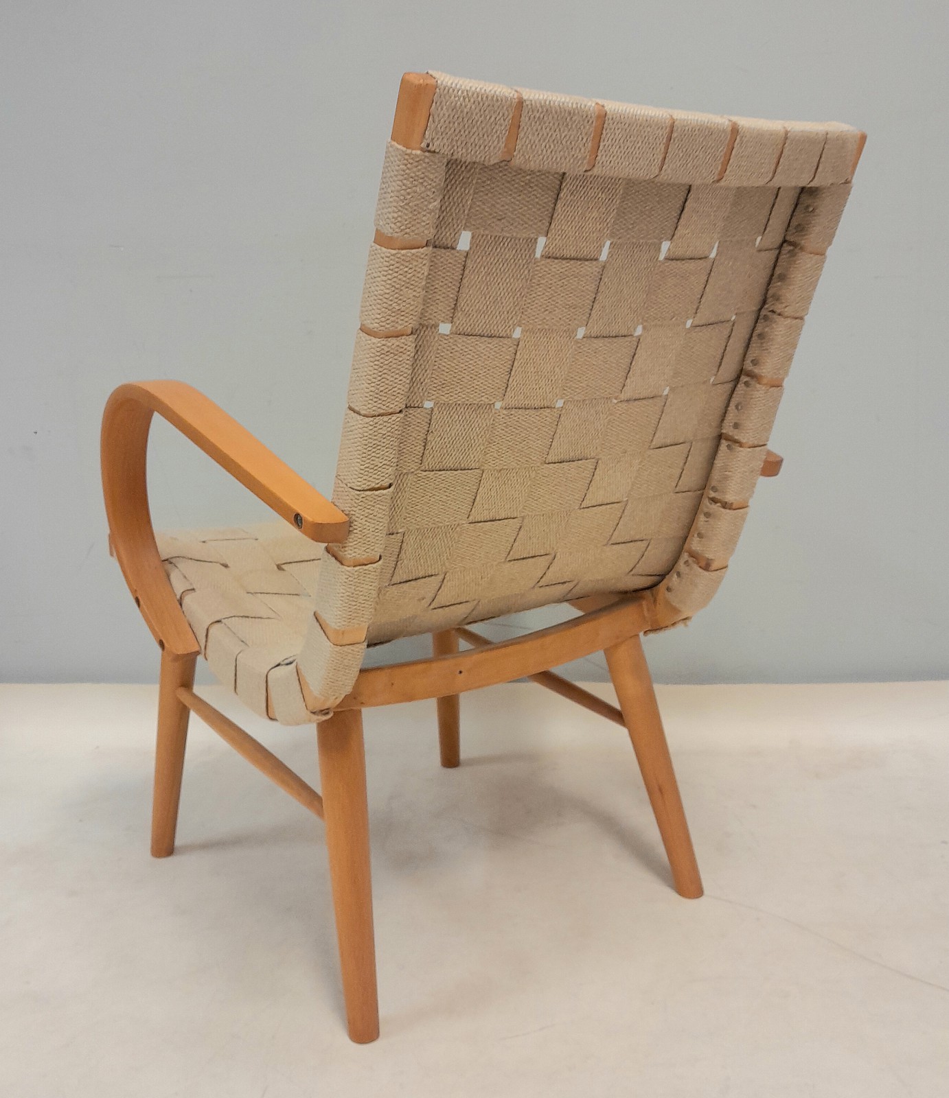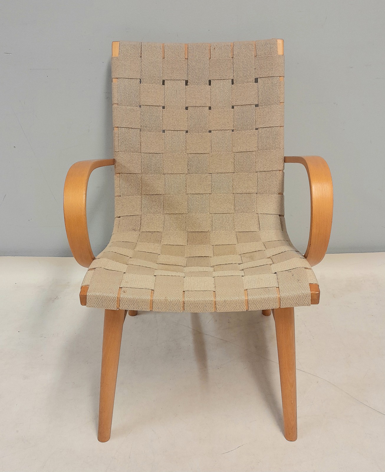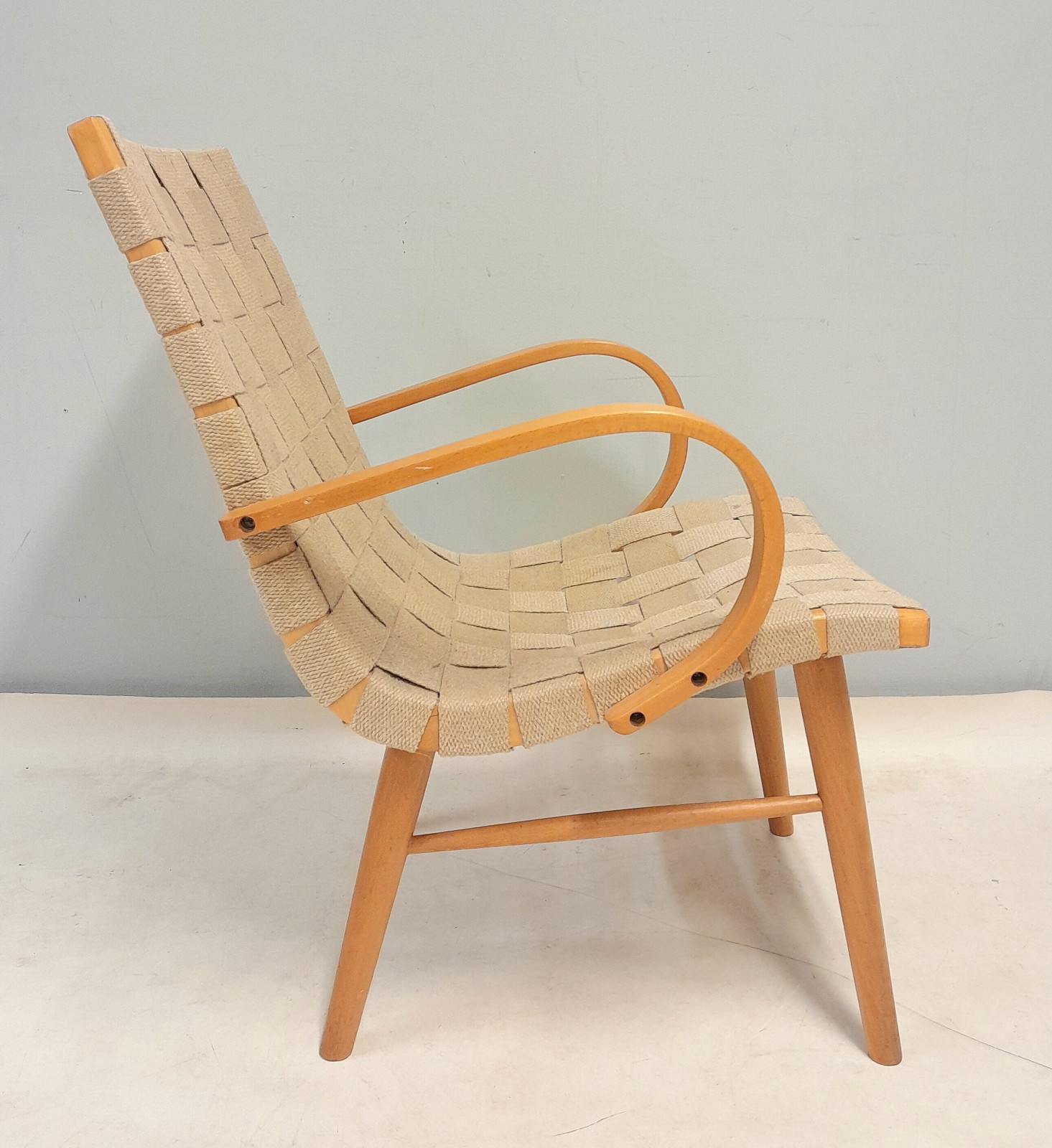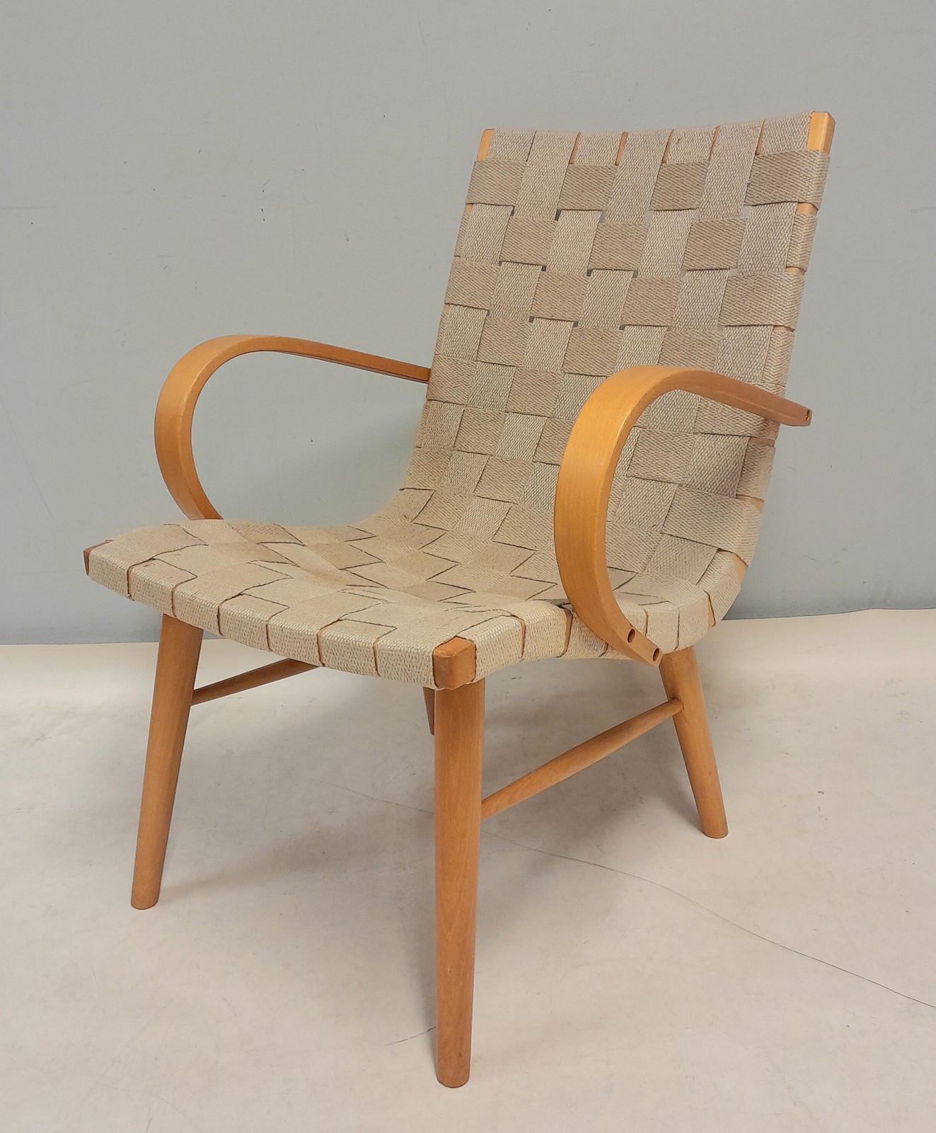 FÅTÖLJ, SWEDISH MODERN, 1940-TAL, MÖJLIGEN YNGVE EKSTRÖM, ESE-MÖBLER Stomme i bok, flätad sits i sadelgjord, en mutter saknas, fläckar på sits, sh 39 cm, rh 79 cm Avslutas 2026-02-09 18:08:00