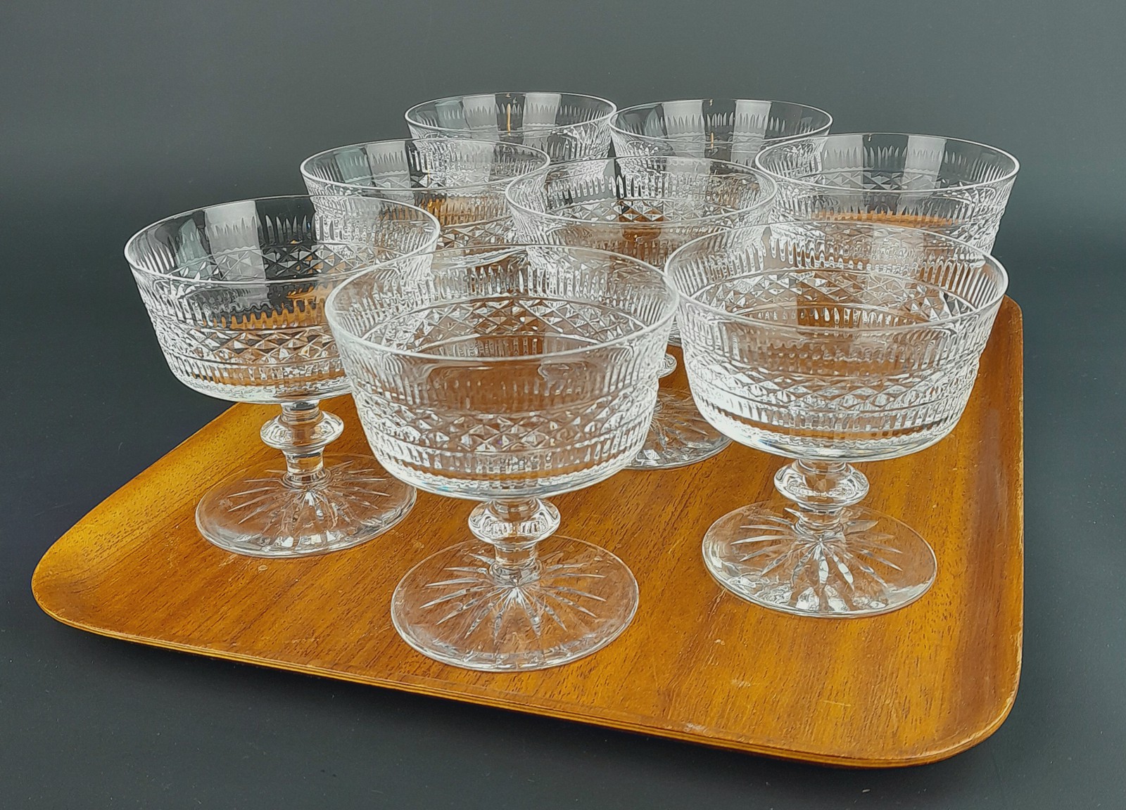 DESSERT/CHAMPAGNESKÅLAR, 8 ST, GLAS Slipad mönster, h 9 cm, dia 9,5 cm Avslutas 2026-02-09 18:09:00