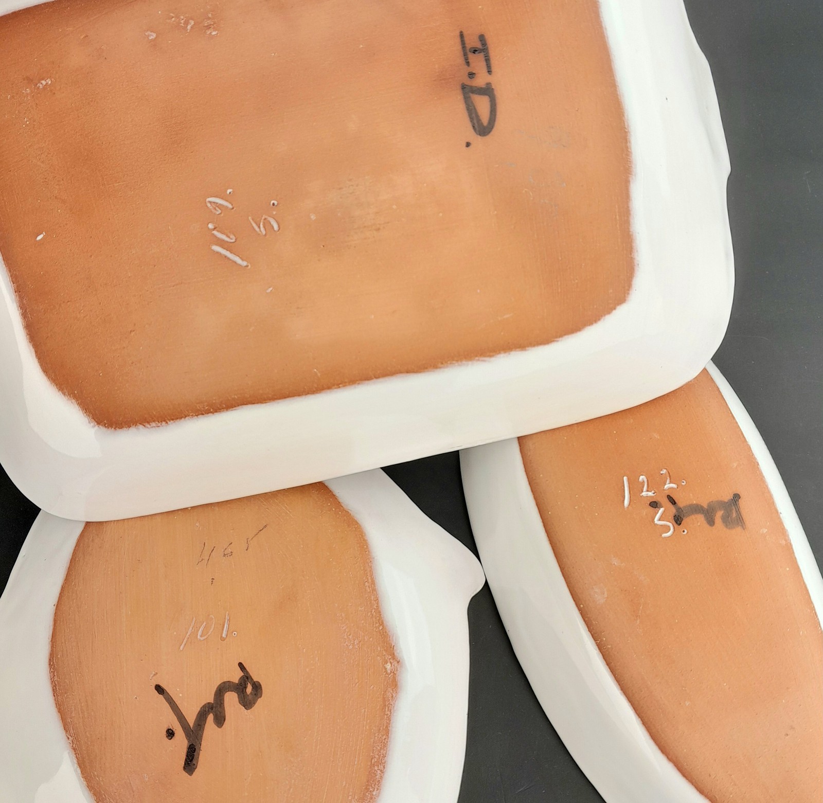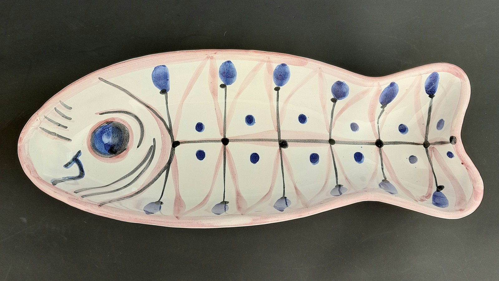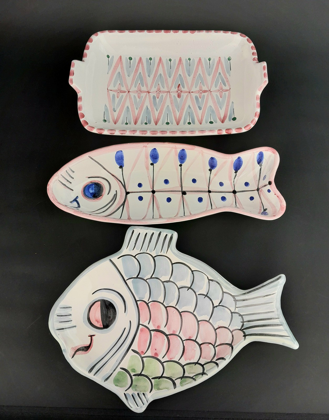 UGNSFAT, 3 ST, MÖJLIGEN LAHOLM Glaserat lergods, två formade som fiskar, längsta 28 cm Avslutas 2026-02-09 18:10:00