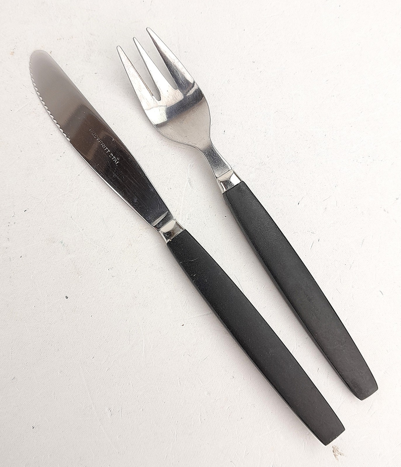 BESTICK/SMÖRGÅSBESTICK, 1950-TAL Bakelit, rostfritt stål, 19 gafflar l 15 cm, 19 knivar l 17,5 cm Avslutas 2026-02-09 18:11:00