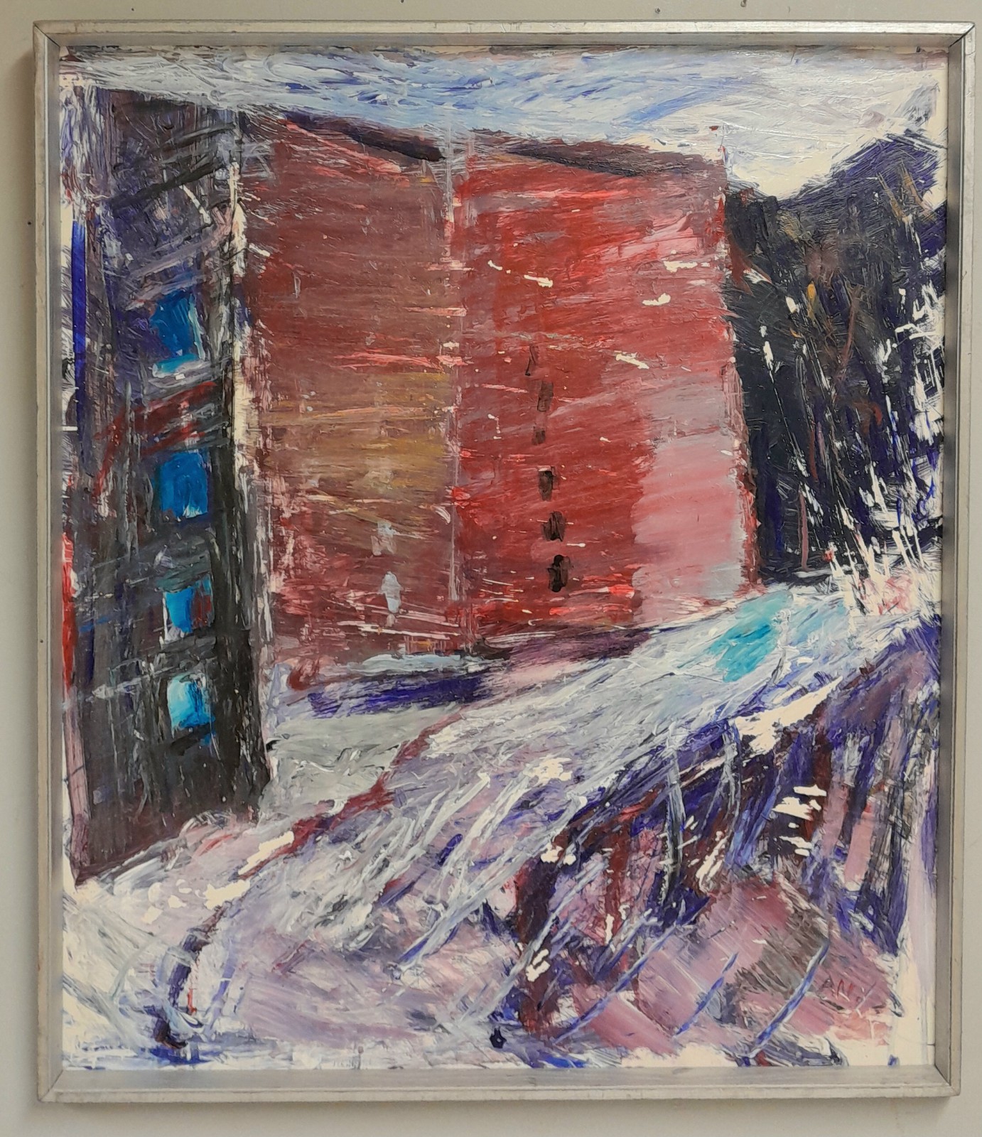 ALLAN NILSSON (1933-2015),"HÖGHUSEN" Akryl, sign AN, 57x67 cm Försäljningen omfattas av Följerätt Avslutas 2026-02-09 18:11:00