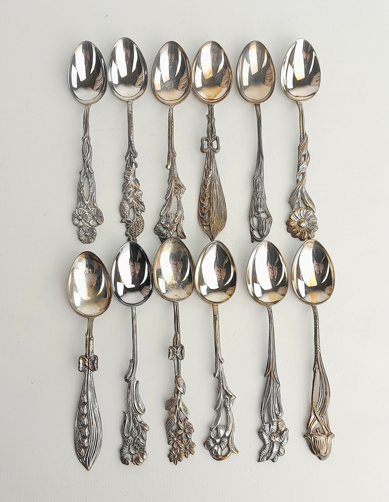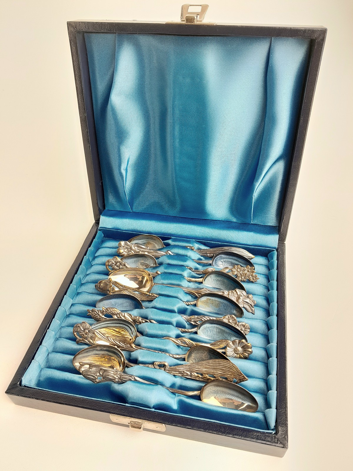 MOCKASKEDAR I ETUI, SILVER, GEWE, 1960/70-TAL 12 st med olika blommotiv, l 10 cm, vikt 101 gram Avslutas 2026-03-30 18:02:00