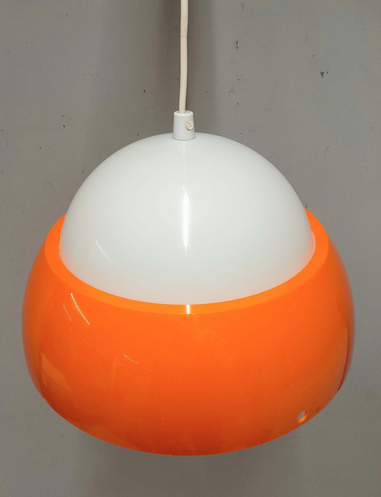 TAKLAMPA, 1960/70-TAL orange och vit plast, diam 33 cm, raster saknas, färg på takkoppen Avslutas 2026-03-30 18:08:00