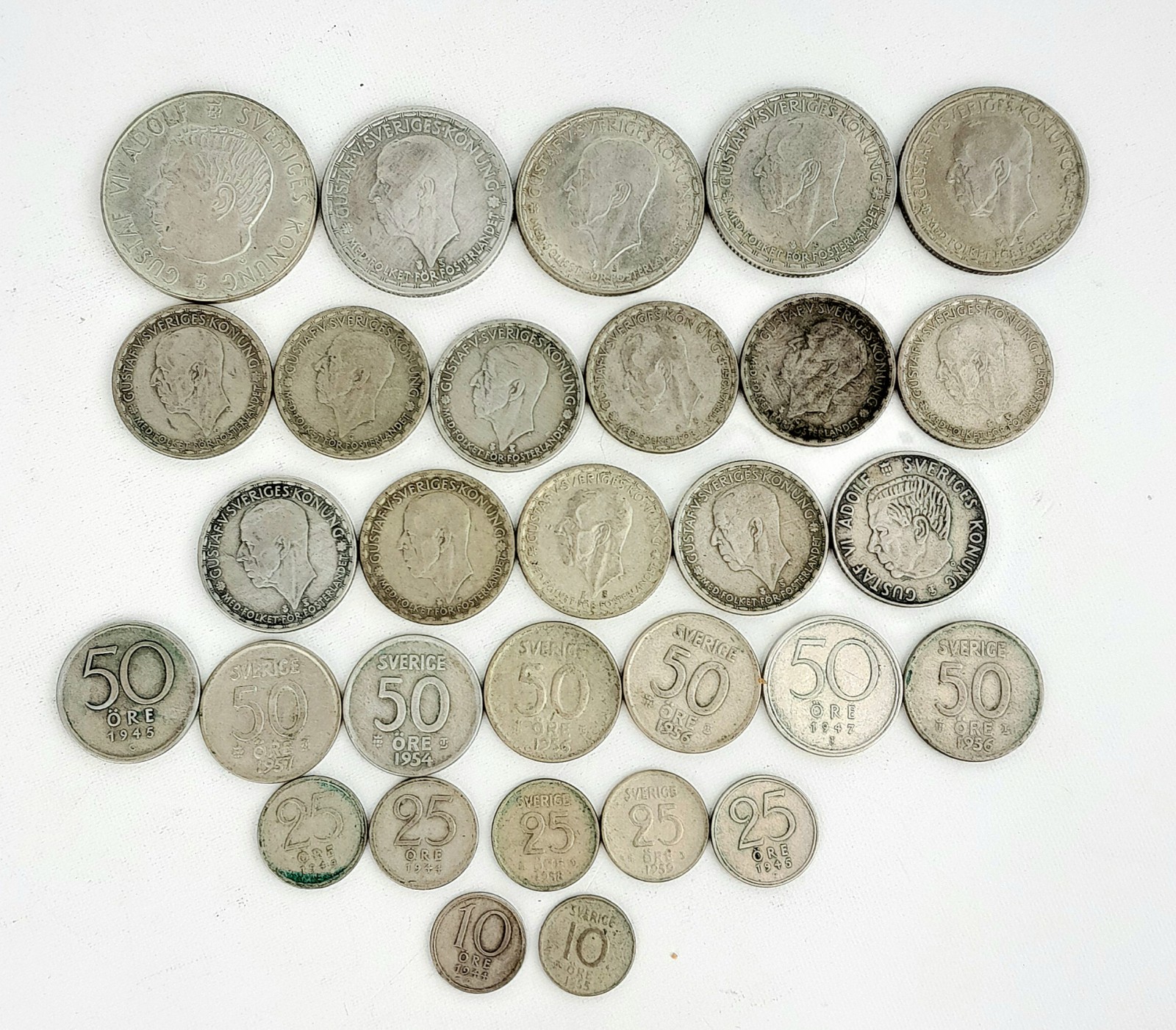 SVENSKA MYNT, SILVER 40%, VIKT 198 GRAM Mest 1940-tal Avslutas 2026-03-30 18:11:00