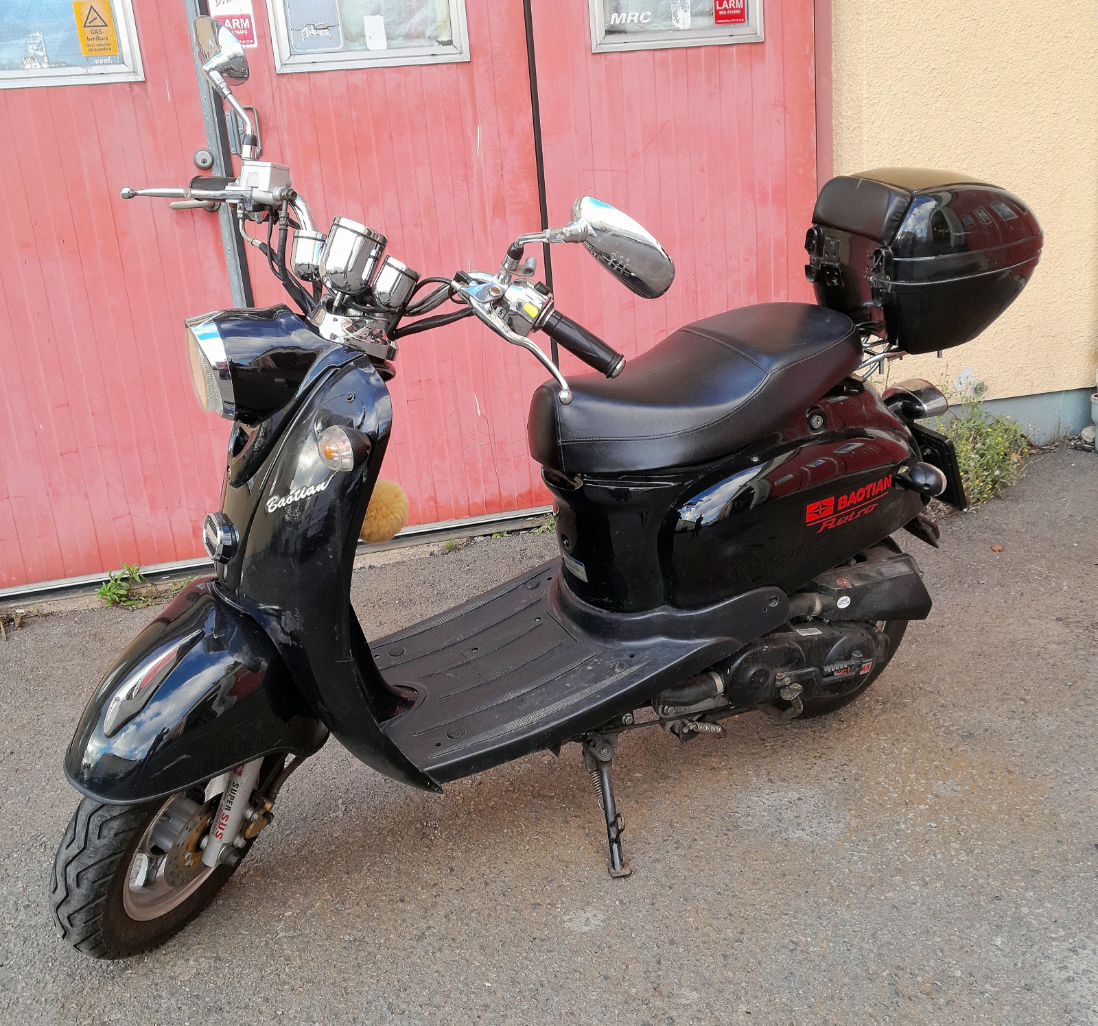 MOPED, BAOTIAN RETRO Årsmodell 2012, har gått 1120 km, en sidolykta lite lös, hjälm ingår Avslutas 2025-10-20 19:34:00