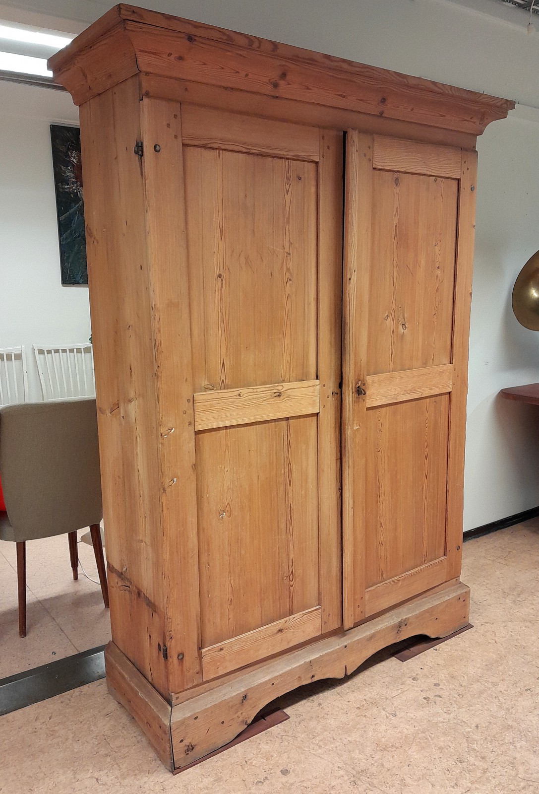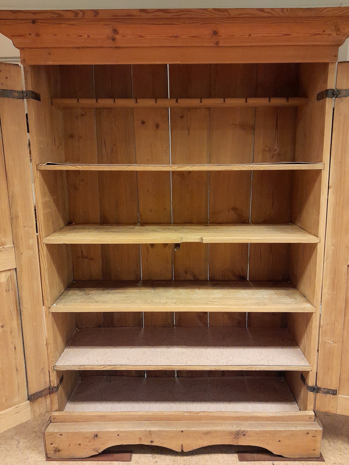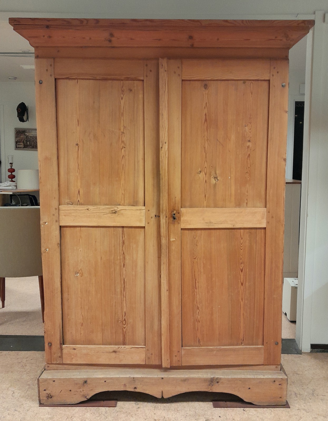 SKÅP, 1800-TAL, ALLMOGE, FURU 5 hyllplan, en skårad för glas, nyckel, h 191 cm, b 124 cm, d 43 cm, märken, slitage, en dörr något skev Avslutas 2026-02-09 18:33:00