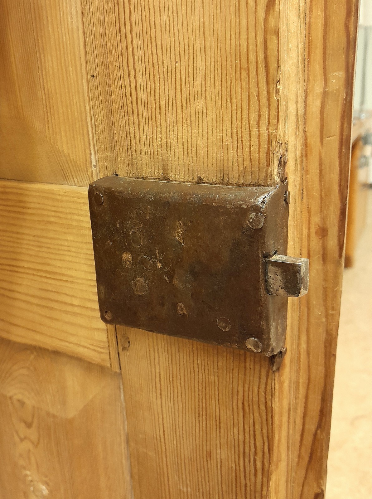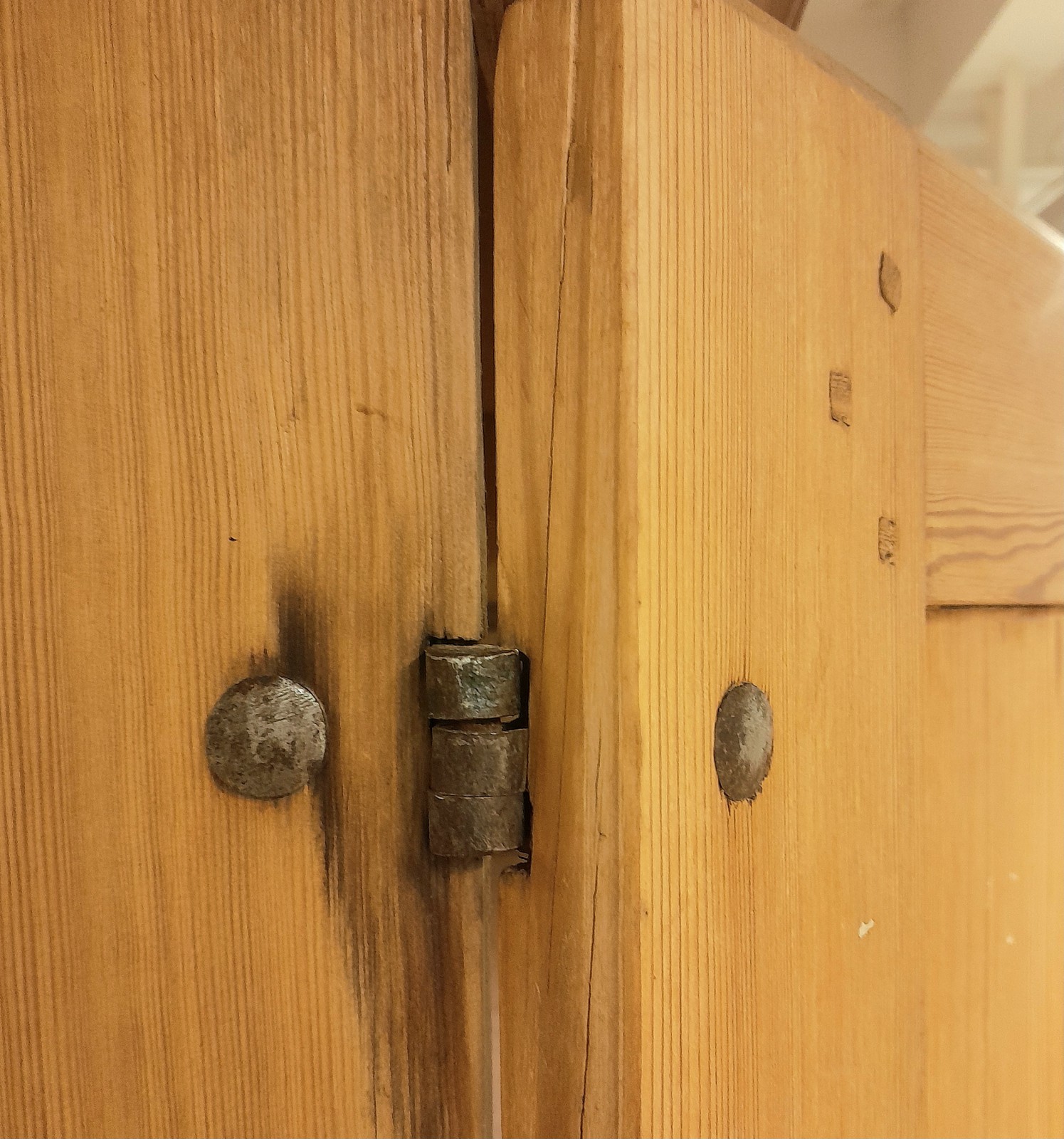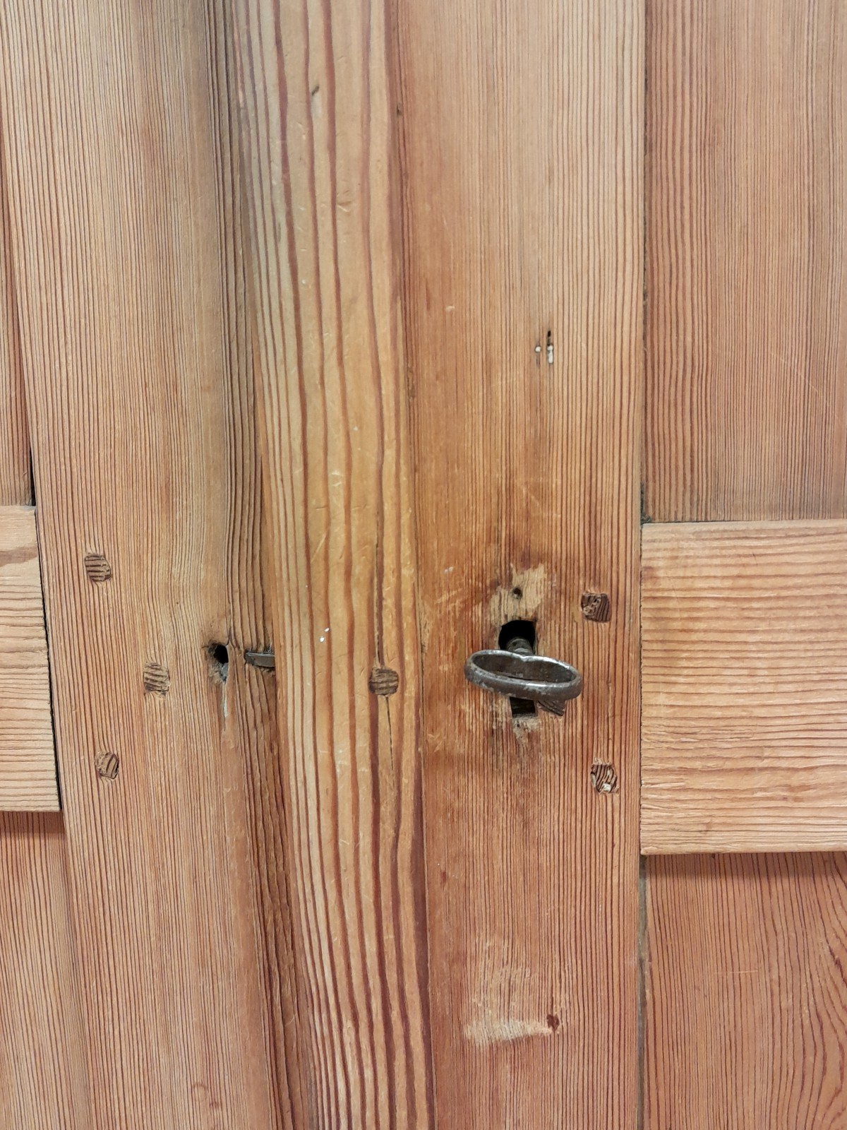 SKÅP, 1800-TAL, ALLMOGE, FURU 5 hyllplan, en skårad för glas, nyckel, h 191 cm, b 124 cm, d 43 cm, märken, slitage, en dörr något skev Avslutas 2026-02-09 18:33:00