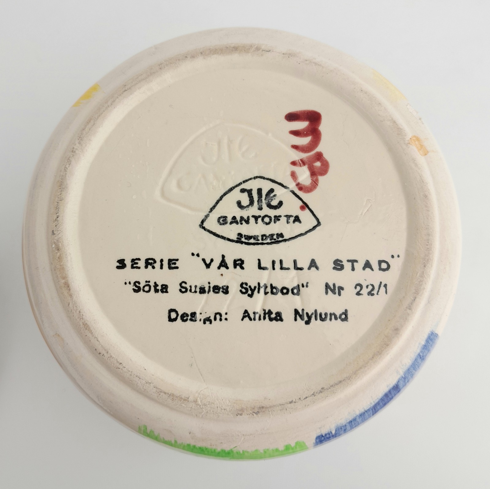 ANITA NYLUND, PORSLINSBURK, "SÖTA SUSSIES SYLTBOD", JIE/GANTOFTA Ur serien "Vår lilla stad", teaklock, h 14 cm, liten naggskada nedtill Avslutas 2026-03-30 18:08:00