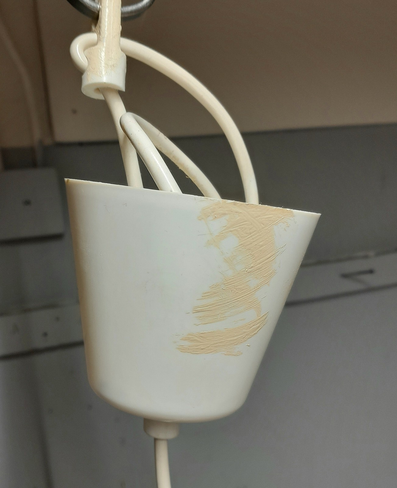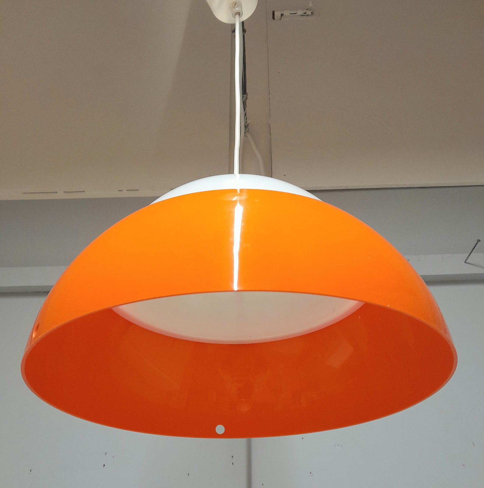 TAKLAMPA, 1960/70-TAL orange och vit plast, diam 33 cm, raster saknas, färg på takkoppen Avslutas 2026-03-30 18:08:00