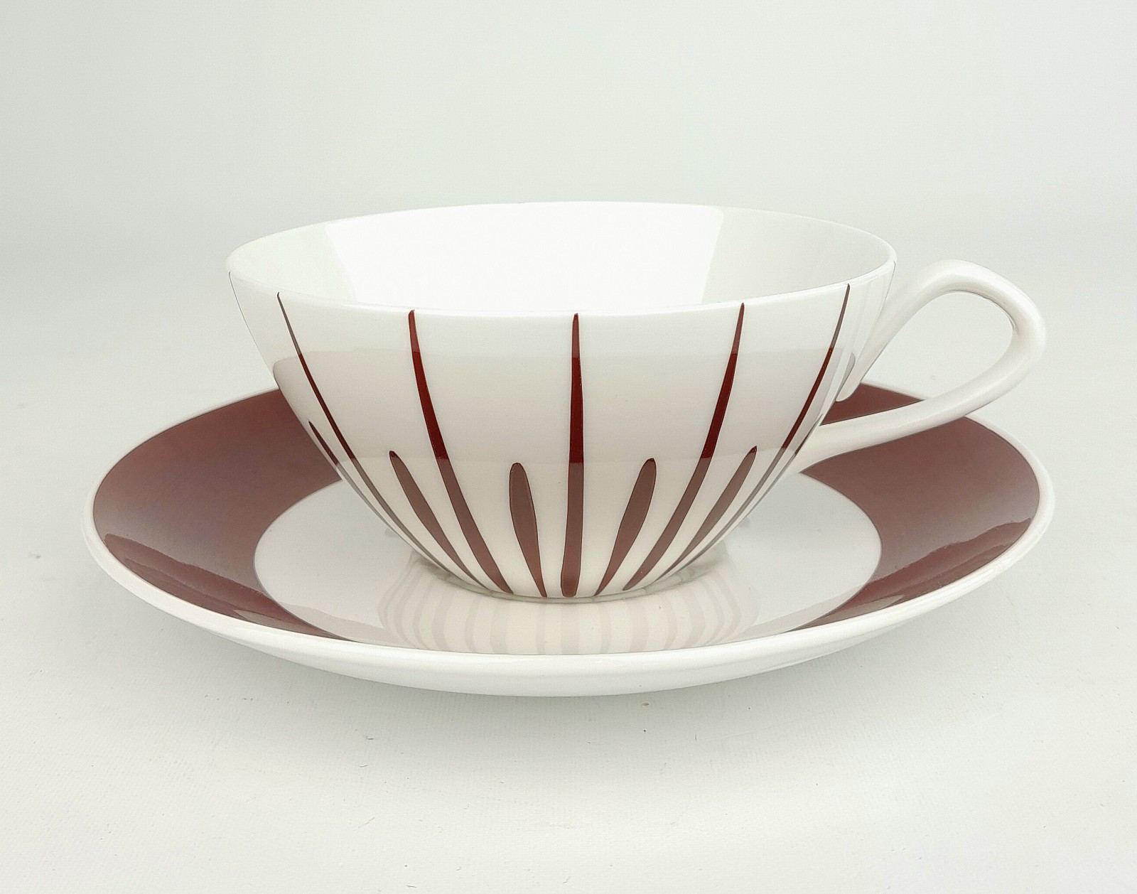 TEKOPPAR, 12 ST, GUSTAVSBERG, 1950/60-TAL Brunröd dekor, kopp h 5,5 cm diam 11 cm Avslutas 2026-03-30 18:09:00