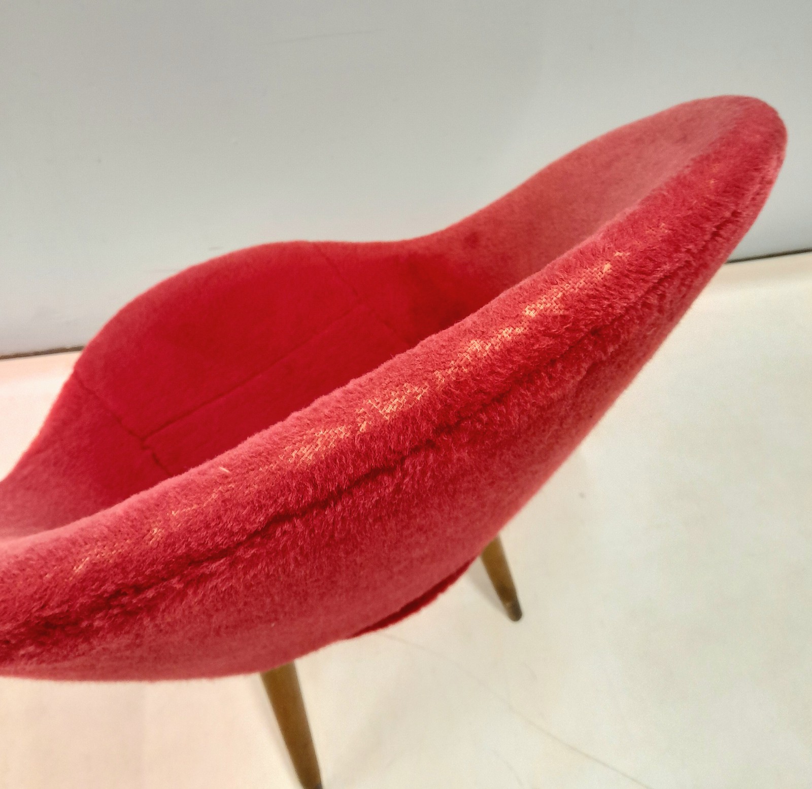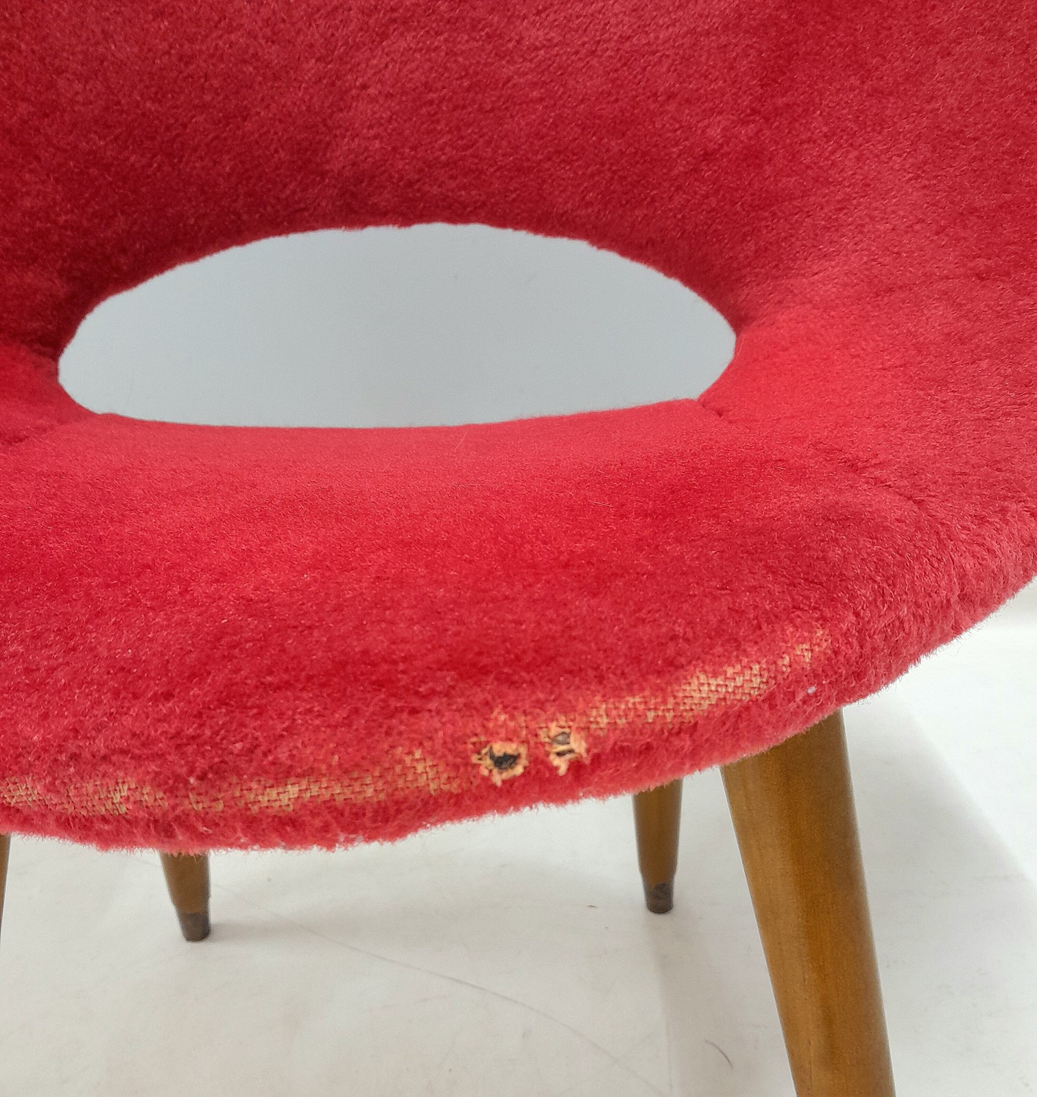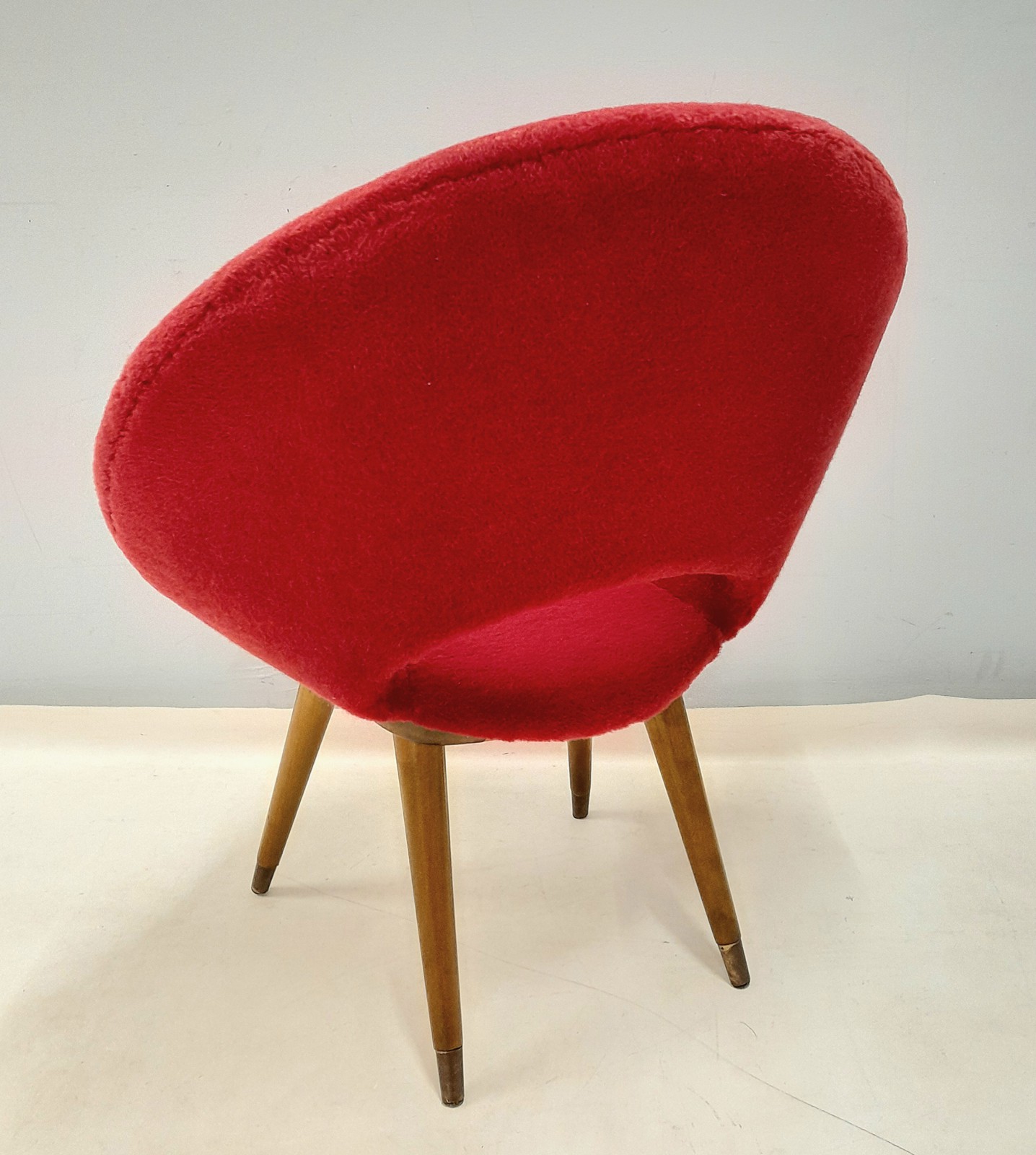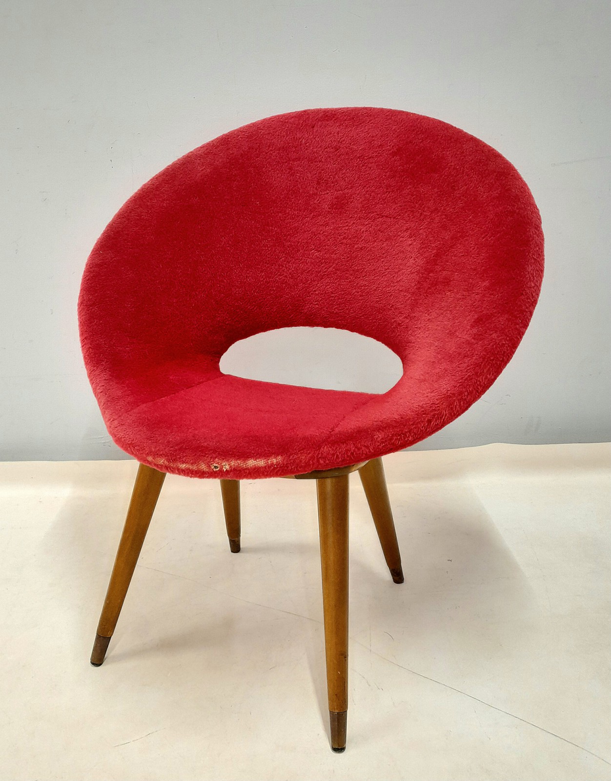 FÅTÖLJ, 1950/60-TAL Klädd i "luddig" hallonröd textil, rh 79 cm, sh 37 cm, slitage framkant och upptill Avslutas 2026-03-30 18:10:00